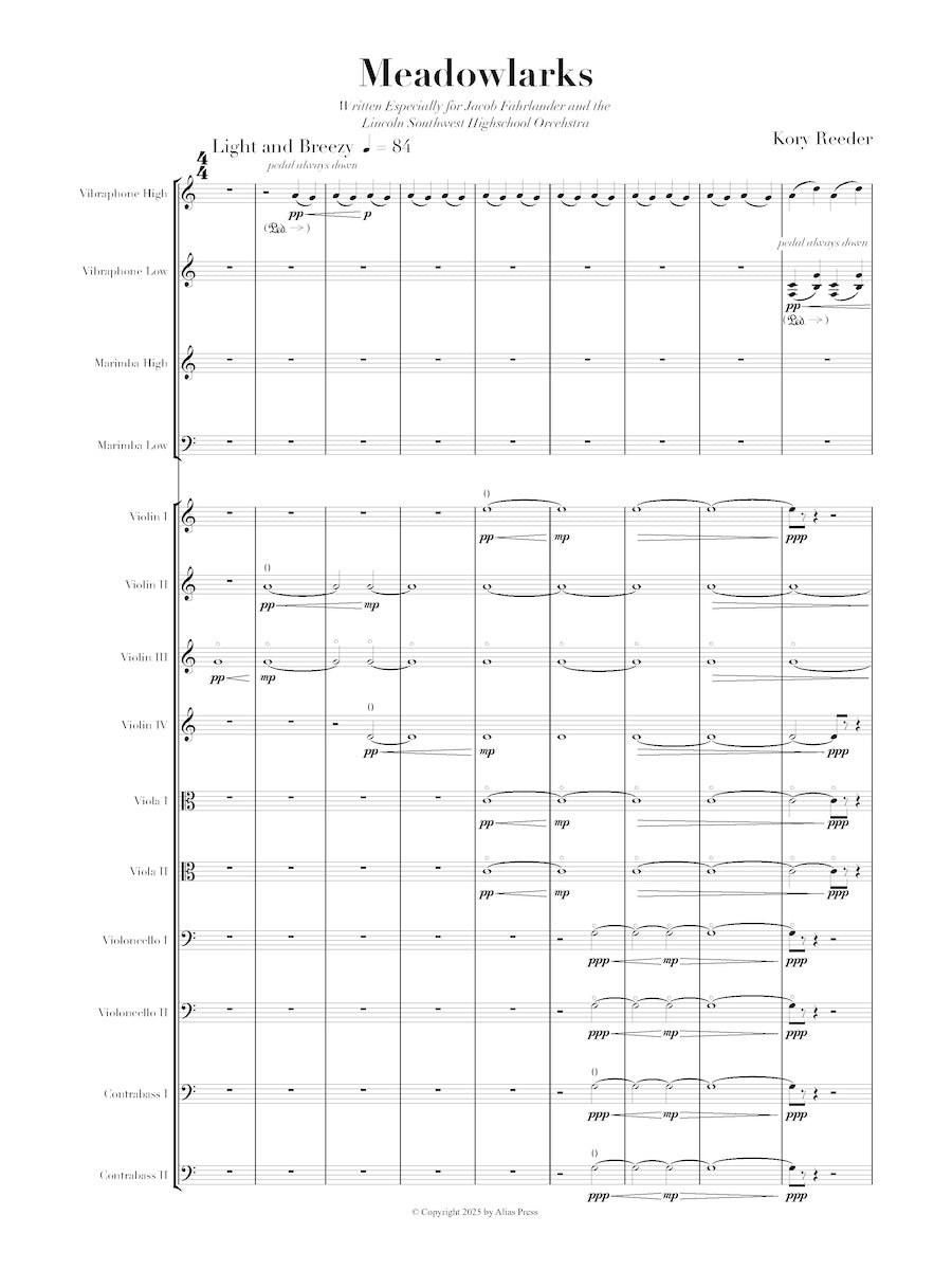 For this piece, I wanted to offer students something that is approachable yet artistically challenging but still a chance to explore new techniques, pandiatonic harmonic palettes, and abstract, non-narrative structures. I also drew from memories of my own high school band and orchestra days: steady pulses, driving 7/8 and 5/8 grooves, and subtle “sound effects” that remain firmly rooted in a context familiar to young players. Working with the Lincoln Southwest High School Orchestra under the direction of my longtime friend Jacob Fahrlander was a joy. Jacob trusting me to create something worthwhile for his students, and me trusting his skill as a teacher was at the heart of this collaboration. The maturity and artistry of the students exceeded my expectations, and this experience has only deepened my eagerness to work with young musicians in the future.